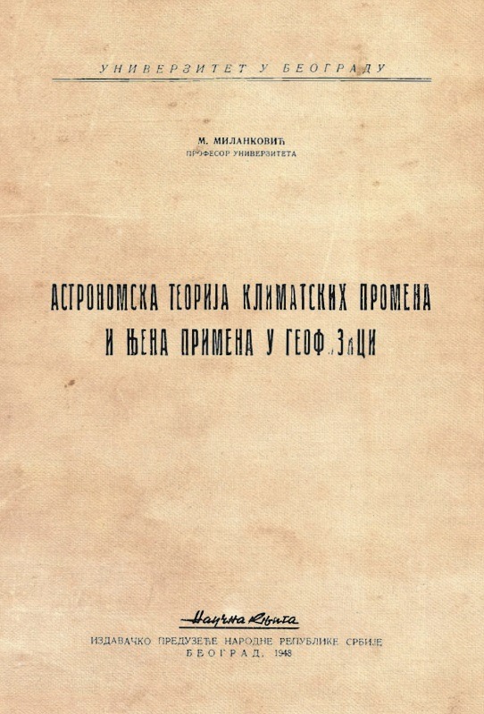 Астрономска теорија климатских промена и њена примена у геофизици Научна књига Београд1948. година